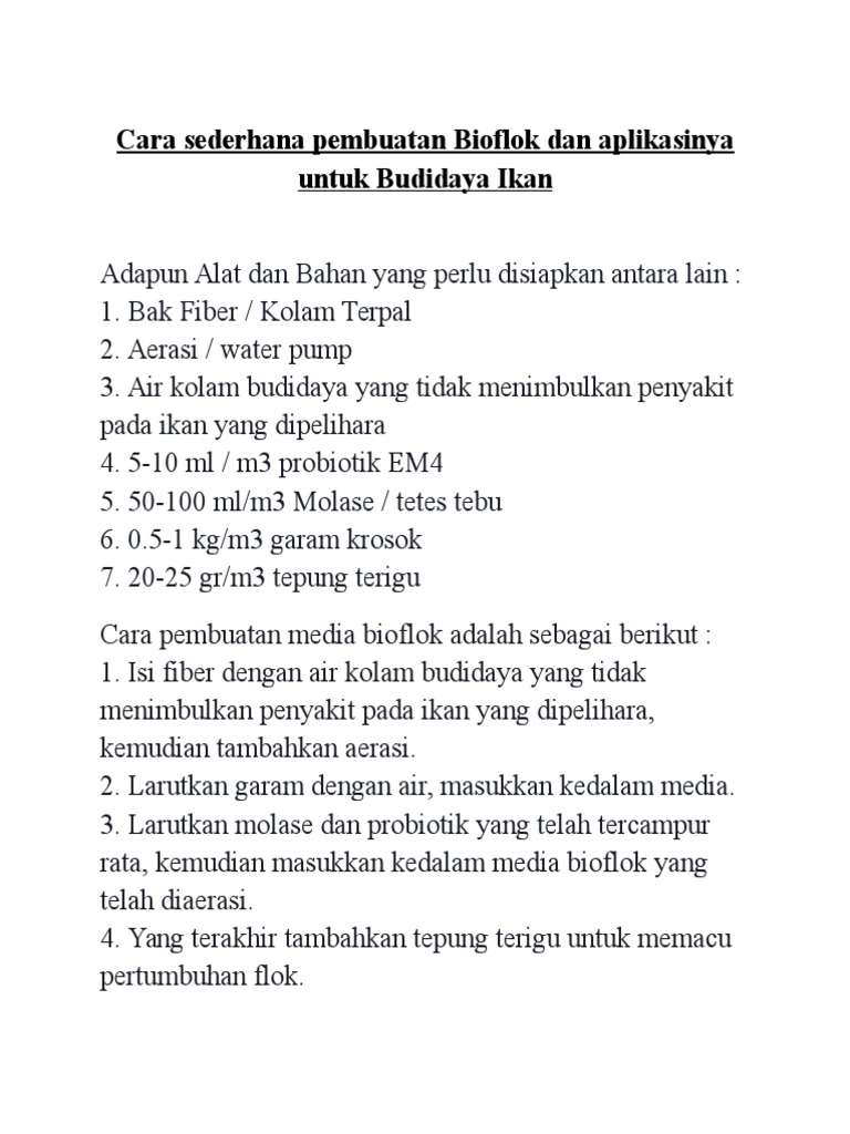 Cara Sederhana Pembuatan Bioflok Dan Aplikasinya Untuk Budidaya Ikan Pdf